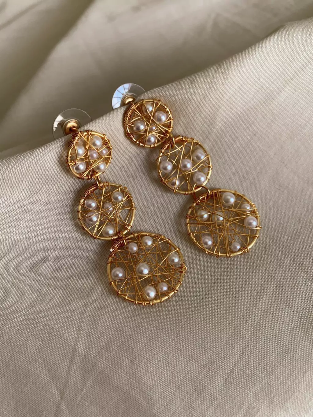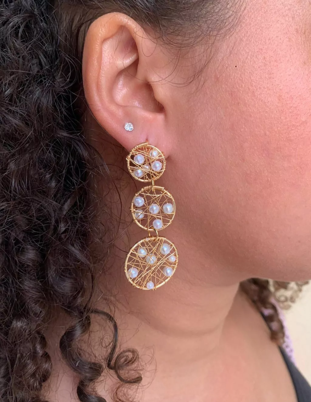 MATERIAL: Moldeado a mano con alambre chapado en oro, perlas y mostacillas.