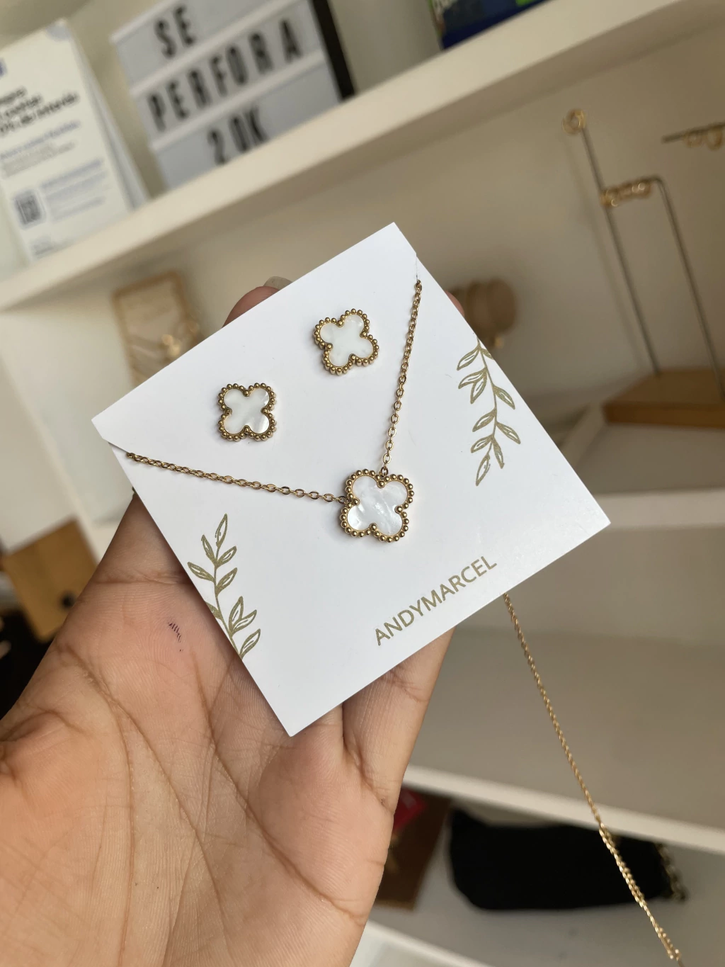 Luce un estilo inigualable con la Cadena + Aretes Van Cleef. ¡Haz tu compra hoy y transforma tu look con este accesorio que enamora!