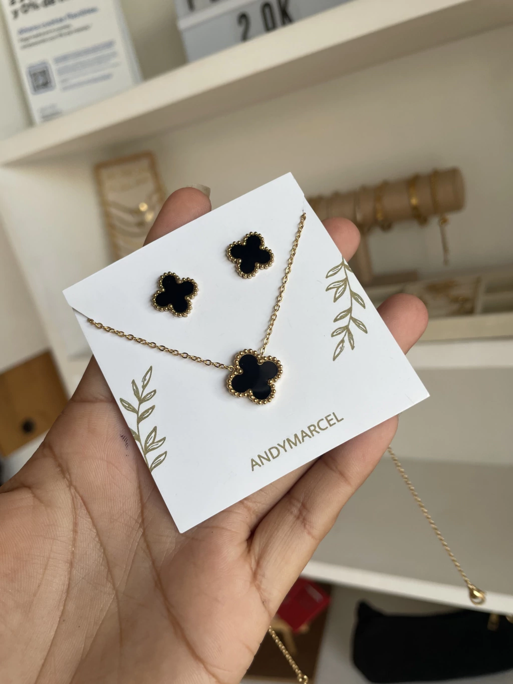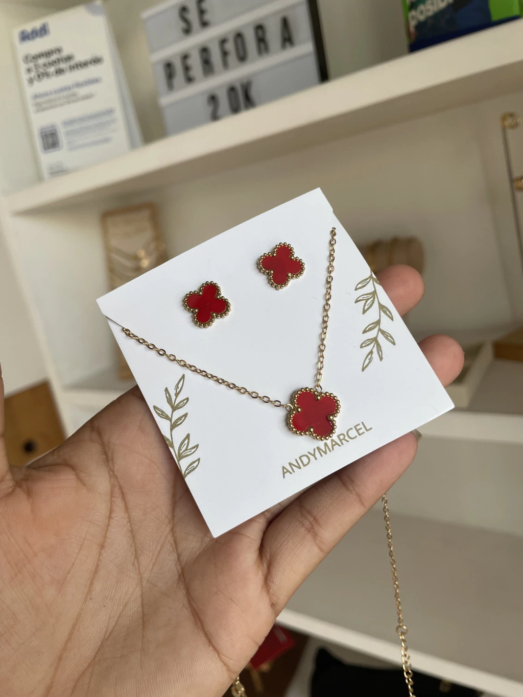 Descubre la sofisticación y el encanto de nuestra Cadena + Aretes Van Cleef, el conjunto ideal para realzar tu estilo en cualquier ocasión.